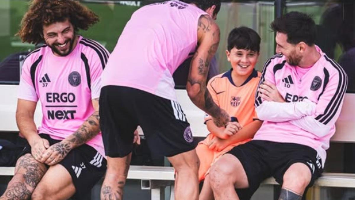 Mateo Messi bromea con Rodri de Paul con la camiseta del Barça. /Instagram