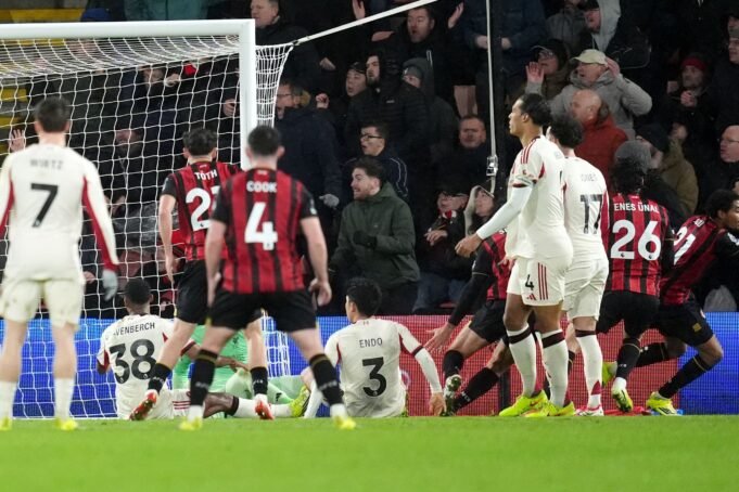 Amine Adli anotó el gol de la victoria en el quinto minuto del tiempo añadido mientras la pésima defensa del título del Liverpool sufría otro revés con una dramática derrota por 3-2 en Bournemouth.