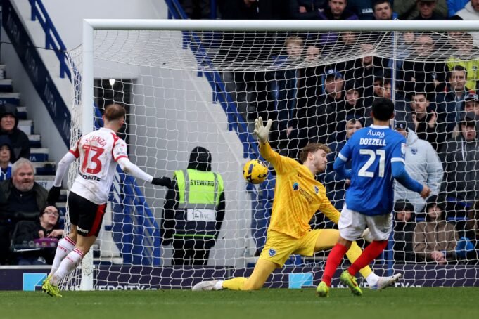 Los Saints estaban en camino de lograr su primera victoria de liga en Fratton Park en 50 años después del gol inicial de Leo Scienza en el minuto 57.
