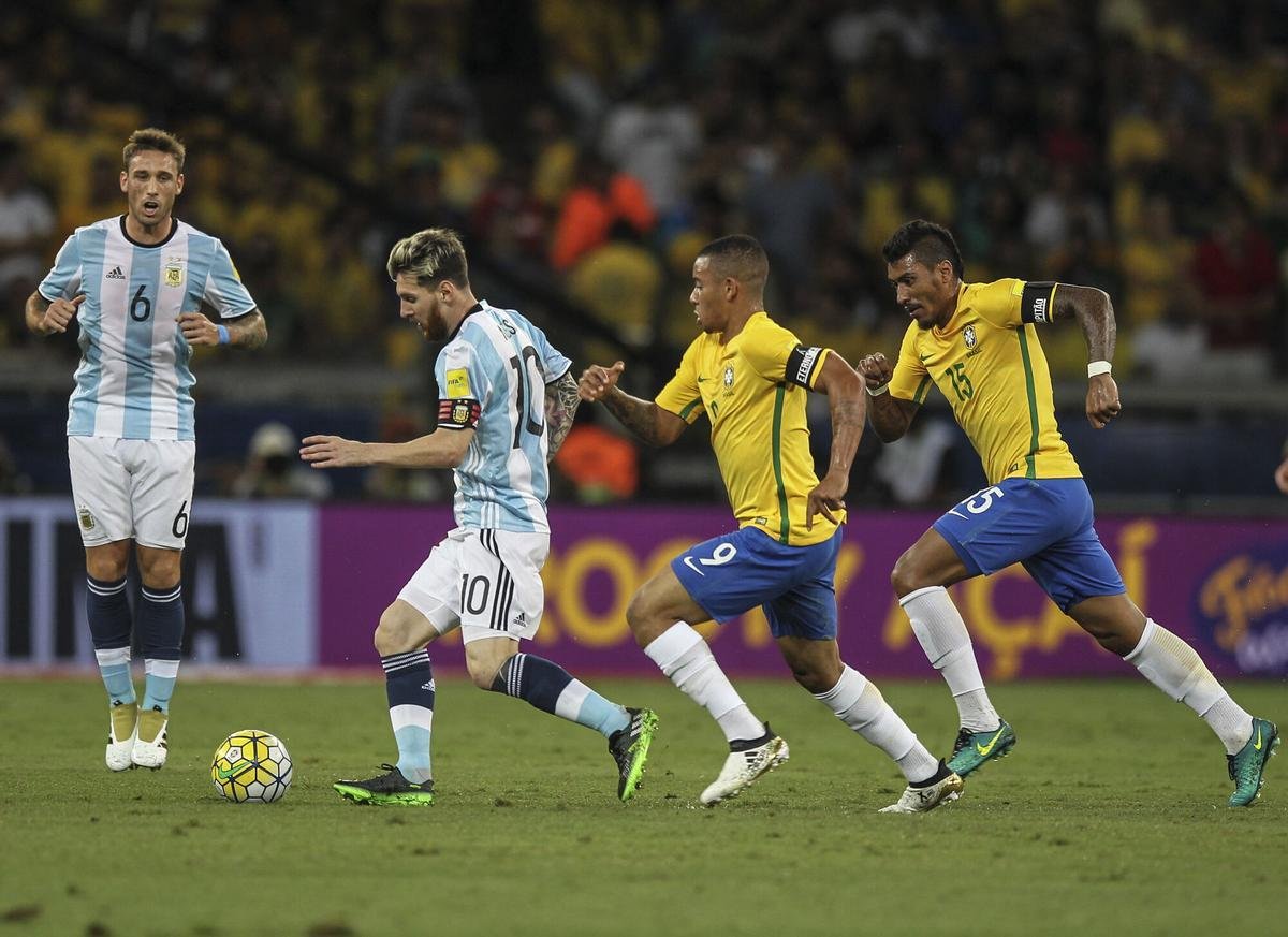 Messi y Paulinho se vieron las caras en los Argentina-Brasil /EFE