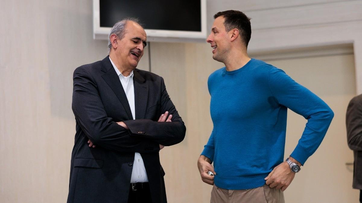 Juanan Morales, presidente del Joventut, y Jordi Trias, dialogaron antes del sorteo de Copa / Foto ACB – Aitor Arrizabalaga