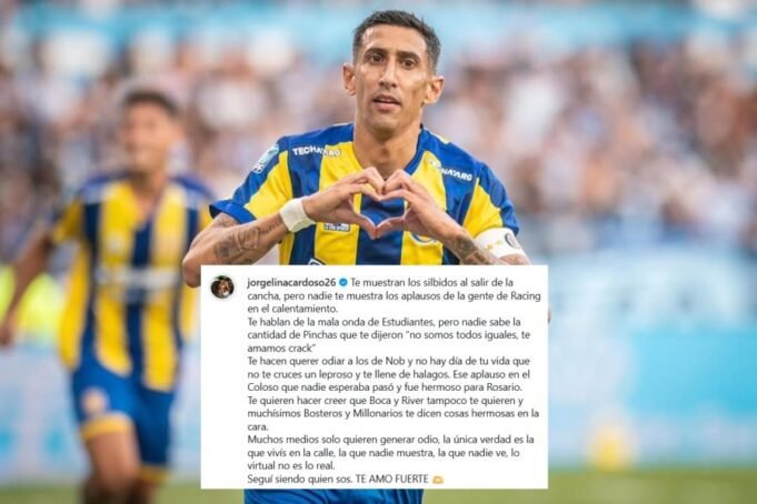 Ante esta situación, Jorgelina Cardosoesposa y compañera de vida de Ángel Di Maríahizo un descargo contrastando “lo que se dice” con “lo que pasa”: “Te muestran los silbidos al salir de la canchapero nadie te muestra los aplausos de la gente de Racing en el calentamiento”.