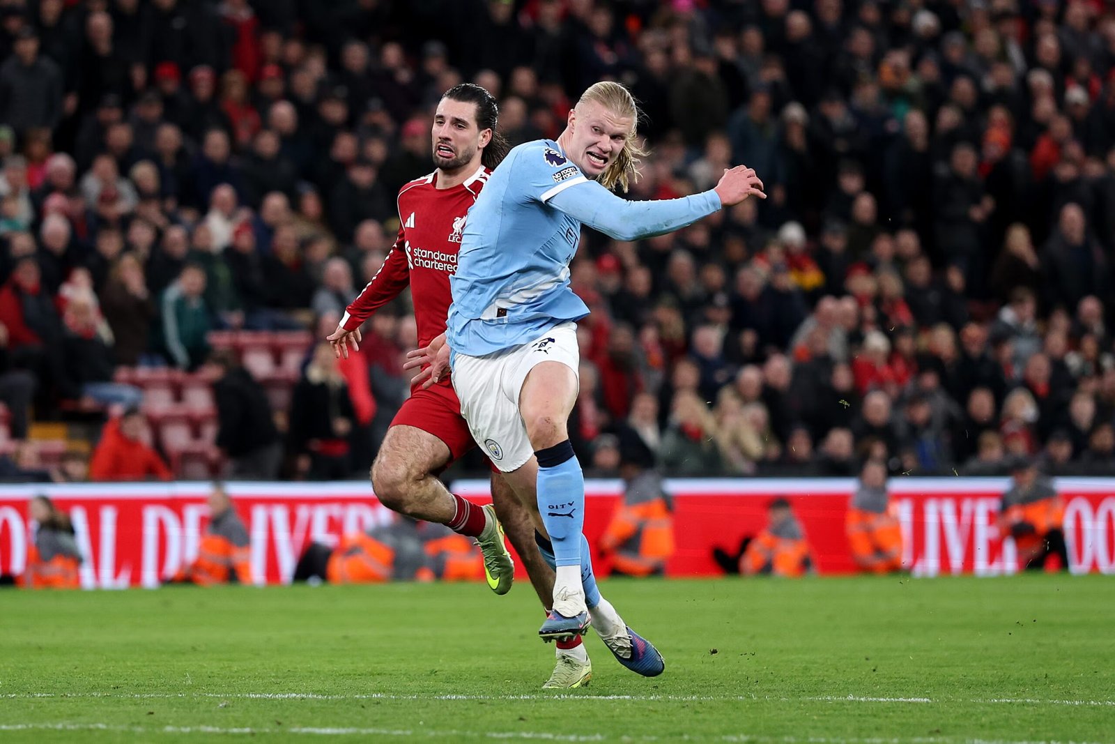 A Rayan Cherki se le anuló un tiro en el tiempo de descuento después de encontrar la red desde la línea media mientras Szoboszlai y Haaland perseguían el tiro, primero el húngaro cometió una falta sobre el noruego y luego el delantero del City tiró hacia atrás al lateral derecho del Liverpool, pero ninguno de los dos hizo contacto con el balón.