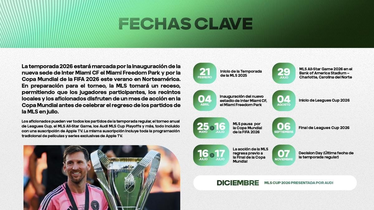 La Major League Soccer levantará el telón de su 31a temporada el próximo 21 y 22 de febrero en uno de los momentos más decisivos de su historia. Con la Copa Mundial de la FIFA 2026 en Estados Unidos, México y Canadá a la vuelta de la esquina, la MLS, ganada este 2025 por el Inter Miami de Leo Messi, se vuelve a presentar al mundo como una liga plenamente consolidada, tanto en lo deportivo como en lo estructural.