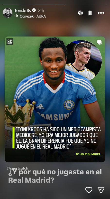 Al ver estos comentarios online, Kroos los volvió a publicar en su historia de Instagram con la leyenda ‘¿Y por qué no jugaste en el Real Madrid?’ Al ex internacional alemán claramente no le impresionaron las declaraciones de Mikel.
