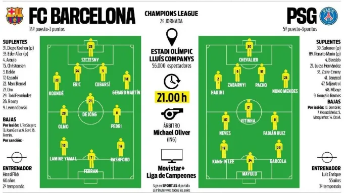 El PSG no tiene deseo, Ousmane Dembele, Khvicha Kvaratskhelia y el Capitán Marquinhos, robándolos de cuatro titulares de esa final. Mientras tanto, Barcelona no tiene Fermin López, Gavi, Joan García, Marc-Andre Ter Stegen y Raphinha, pero han devuelto a Alejandro Balde.