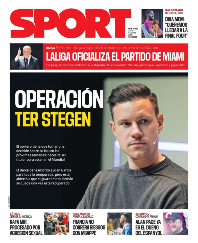 Marc André Ter Stegen tiene en estos momentos el balón en las manos para tomar una choice El meta alemán es el protagonista de la portada de sporting activity de este jueves ya que sabe que si quiere jugar el próximo Mundial, deberá ser titular donde juegue En el Barça su situación es complicada porque el club tiene inscrito a Joan Garcia para toda la temporada No obstante, la entidad blaugrana está abierta a que Ter Stegen se quede cuando esté recuperado. Un gran dilema para él.