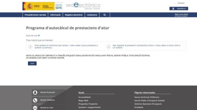 El programa de autocálculo de prestaciones por desempleo, del Servicio Público de Empleo Estatal (SEPE). / Deporte