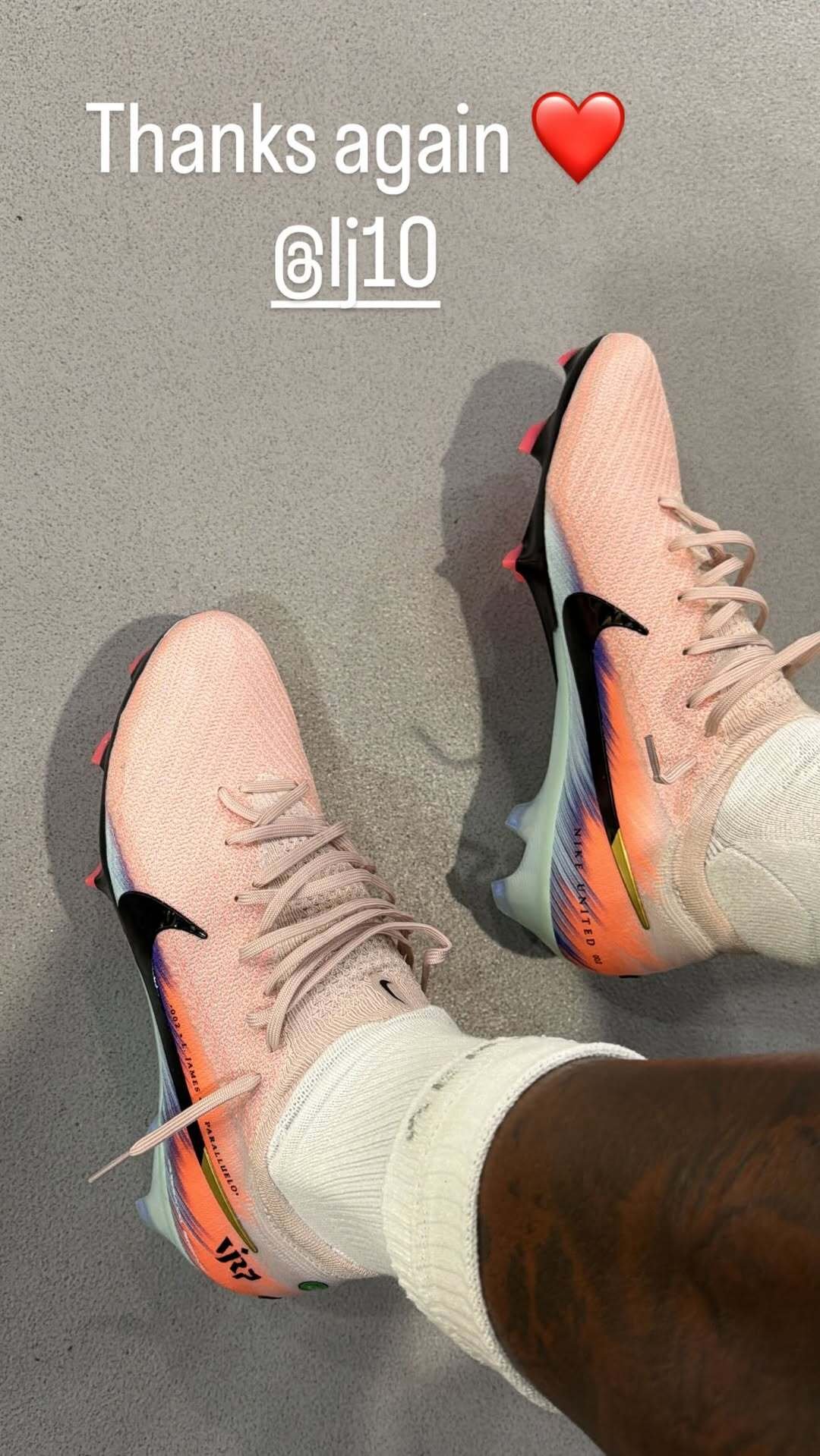 Vinicius publicó una foto suya con las botas en su historia de Instagram con el mensaje ‘Gracias de nuevo’, etiquetando a James. La delantera inglesa lo volvió a publicar en su propia historia disadvantage la leyenda’002