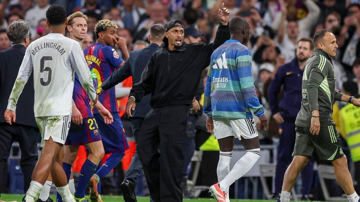 Raphinha saltó al césped del Bernabéu en la tangana final del Clásico / San Valentín Enriquece