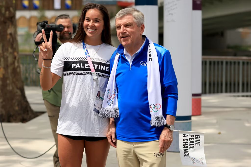 Tuvo el honor de llevar la bandera en la ceremonia de apertura olímpica en el río Sena, como una de los ocho atletas de Palestina. “Hay una foto de todos nosotros en el barco sin una sonrisa en la cara, y era nuestra manera de mostrarle al mundo que estamos aquí y que somos fuertes y estamos presentes, pero no estamos aquí celebrando. Estamos aquí para representar a todas esas personas en el mundo que han muerto y han sido asesinadas y todo lo demás. Eso no es, ‘Dios mío, míranos’. No, somos la cara del país, tenemos el honor de estar allí”.