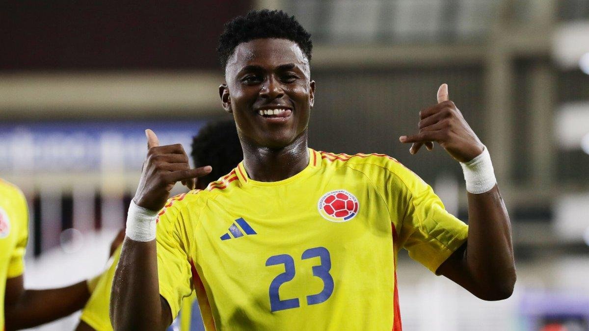 Neiser Villareal celebra uno de sus goles con Colombia en el Sudamericano Sub-20 /EFE