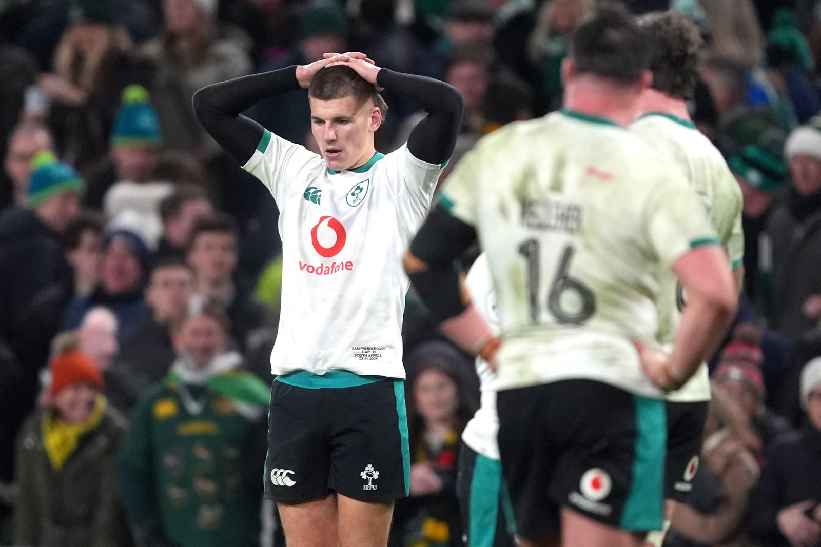 Crowley evitó que Irlanda se quedara más atrás con dos magníficas jugadas de defensa antes de que Sudáfrica celebrara convertirse en el tercer país en vencer a Irlanda en Dublín durante la era Farrell, luego de una tarjeta amarilla tardía para el reemplazo Grant Williams.
