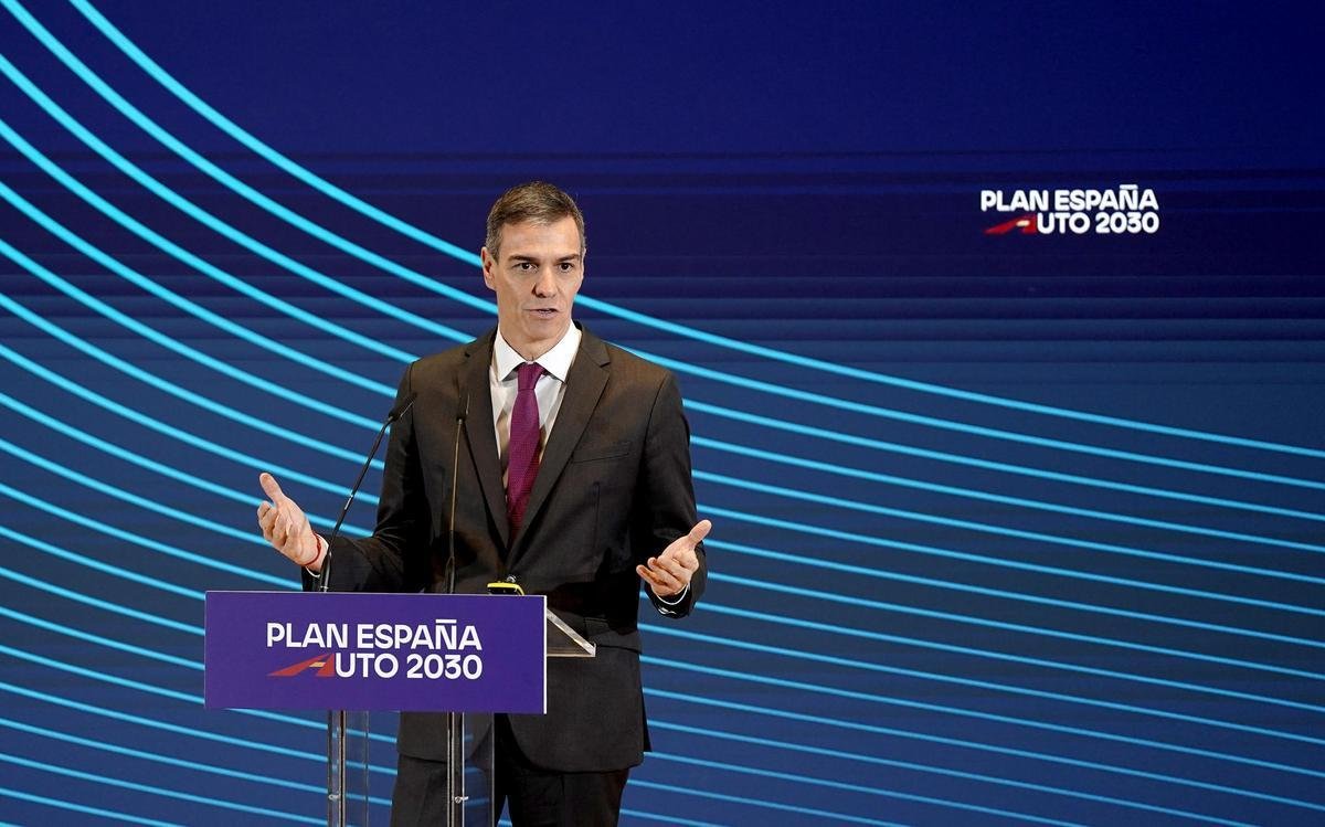 El presidente del Gobierno, Pedro Sánchez, durante el acto de presentación del Plan España Auto 2030. / José Luis Roca
