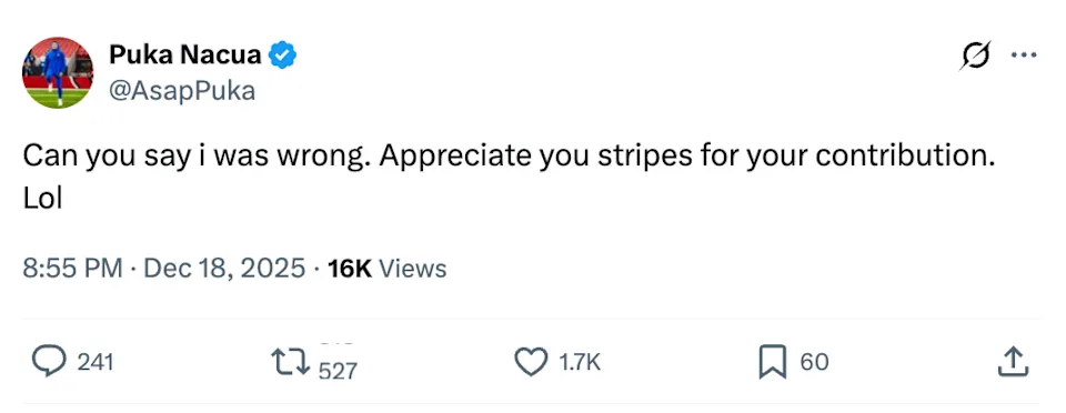 ¿ Puedes decir que me equivoqué? Te agradezco rayas por tu aporte. Jajaja”, escribió Nacua.