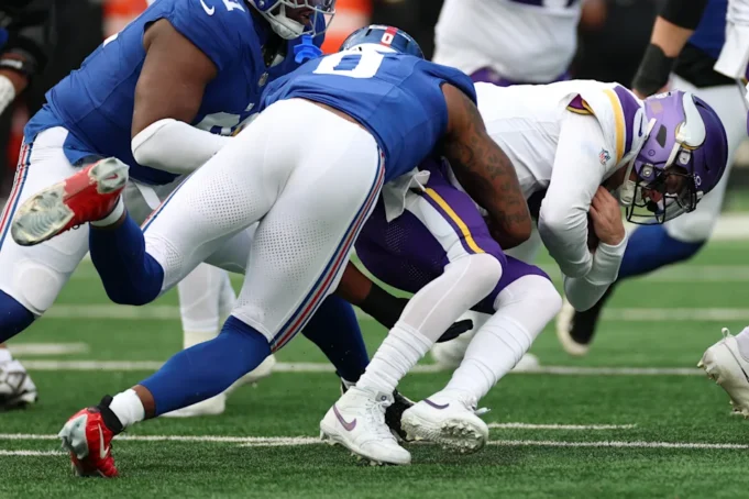 Esta captura de Brian Burns podría ser la última jugada de la temporada debut de JJ McCarthy en la NFL.