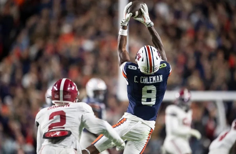 Coleman, quien acaba de terminar su segunda temporada con los Tigres, lideró a Auburn con 708 yardas recibidas y tuvo cinco de sus 11 recepciones de touchdown. El estudiante de segundo año de 6 pies 3 pulgadas y 201 libras tiene 1,306 yardas y 13 touchdowns en 93 recepciones en 23 juegos.