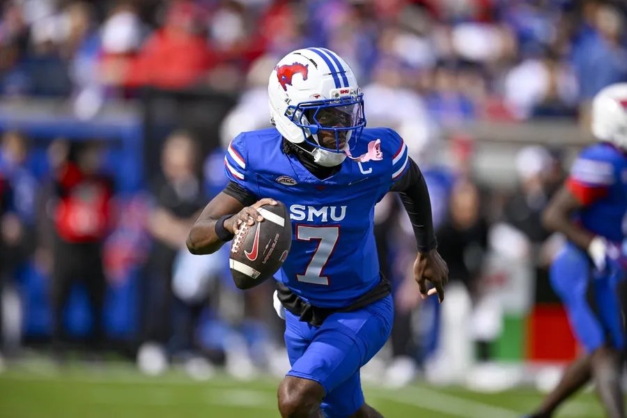 22 de noviembre de 2025; Dallas, Texas, Estados Unidos; El mariscal de campo de SMU Mustangs Kevin Jennings (7) corre con el balón durante el juego entre los Mustangs y los Cardinals en el estadio Gerald J. Ford. Crédito obligatorio: Jerome Miron-Imagn Images Cuente al No. 17 Arizona y SMU entre los equipos que ven la temporada de bolos como un regalo, con relativamente pocas opciones de exclusión conocidas en ambos lados.