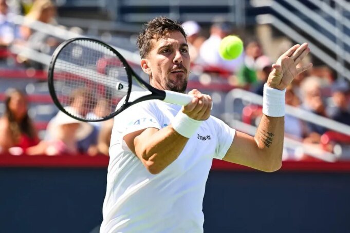 10 de agosto de 2024; Montreal, Quebec, Canadá; Thanasi Kokkinakis (AUS) devuelve el balón a Hubert Hurkacz (POL) (no en la foto) en la segunda ronda en el estadio IGA. Crédito obligatorio: David Kirouac-Imagn Images Thanasi Kokkinakis emocionó a los aficionados locales en Australia el lunes con una remontada en la primera ronda para vencer a Sebastian Korda en el Adelaide International.