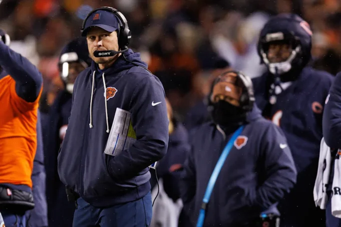 A lo largo de la temporada, Ben Johnson ha sido agresivo con sus jugadas, pero con la temporada en juego, optó por ir a tiempo extra en el juego de la ronda divisional de los Bears contra los Rams. (Foto de Brooke Sutton/Getty Images)