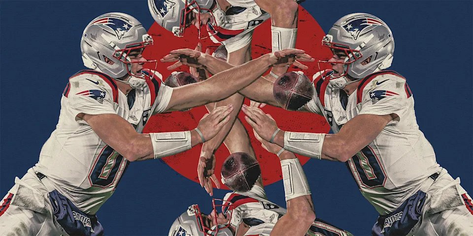 Drake Maye salió victorioso en sus dos primeros juegos de playoffs, pero perdió la mitad de sus seis balones sueltos ante la oposición. (Give Thomas/Yahoo Deportes)