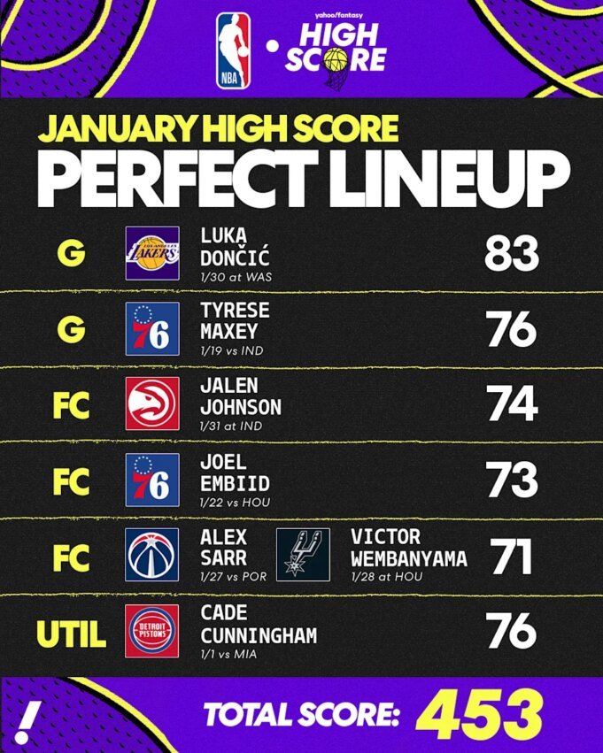 Echemos un vistazo a sus actuaciones y al resto de la alineación perfecta de enero en el baloncesto de fantasía High Score.