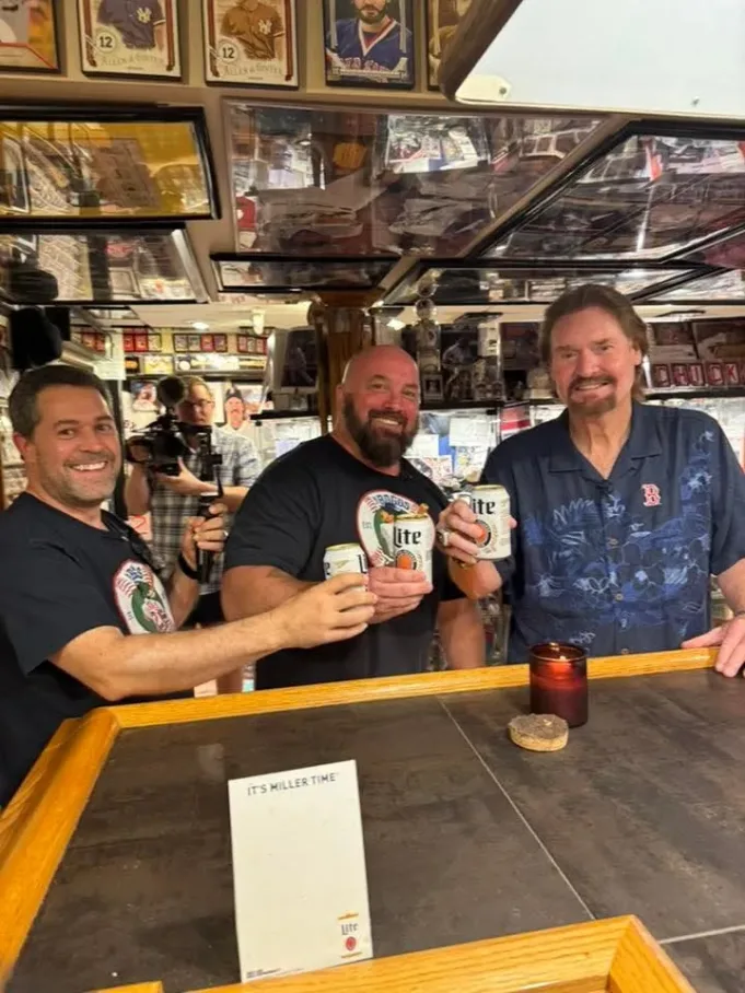 Wade Boggs (derecha) disfruta de una cerveza con uno de sus mayores admiradores, Rich Davis (centro). (La familia Davis)