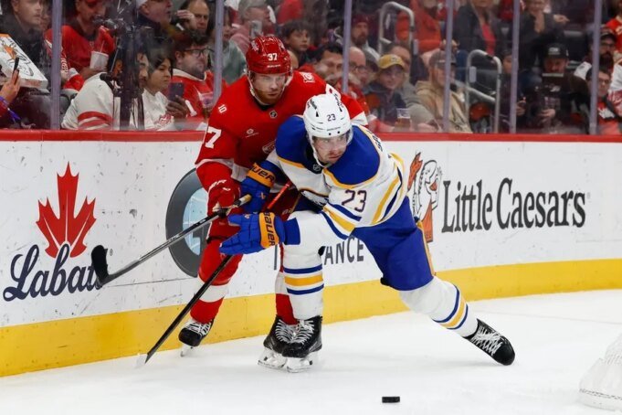 DeBrincat aumentó la ventaja de Detroit a 4-1 a mitad del período con un juego de poder. Su disparo desde el círculo izquierdo rebotó en el palo del defensa Samuelsson y entró en la red.