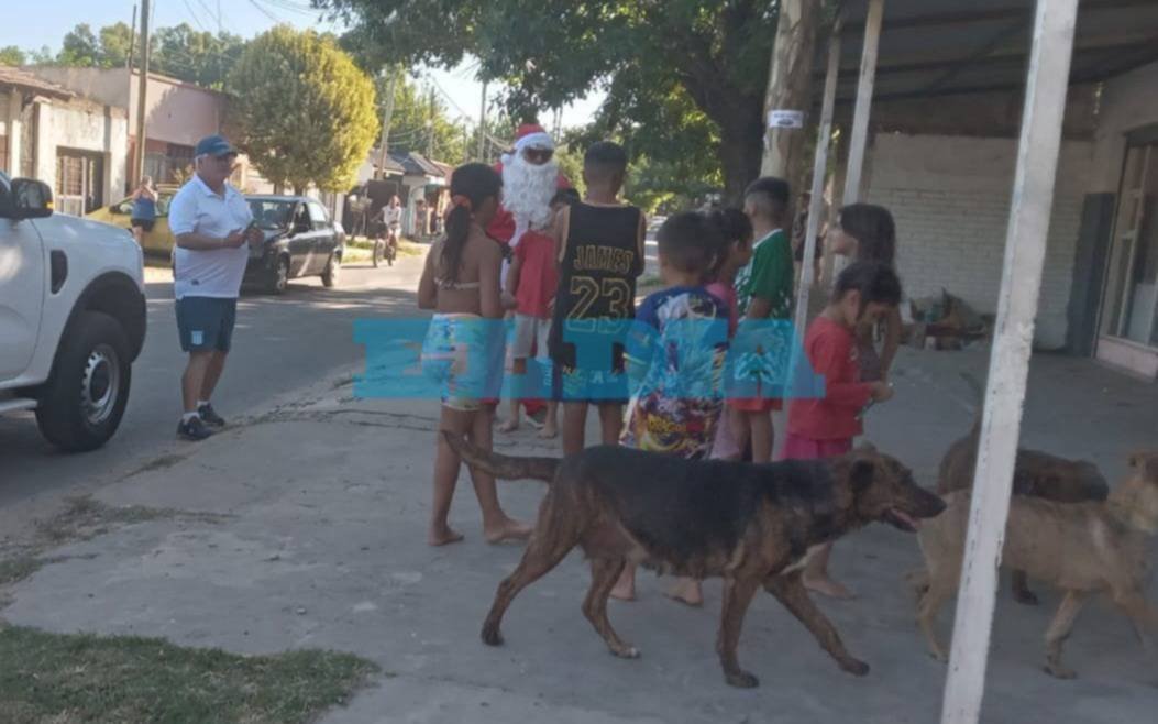 Rodolfo Benítez, un vecino que lo vio de cerca, aseguró que Papá Noel andará hoy por la zona de Lisandro Olmos y Ángel Etcheverry. Allí, compartirá una merienda con facturas junto a los más chicos de esas localidades.