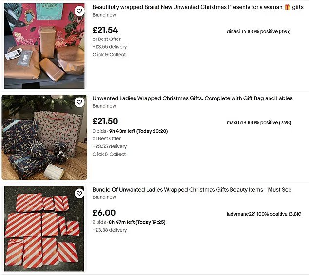 Las búsquedas de “regalo no deseado” en estos sitios arrojan flujos de artículos nuevos, como juegos de artículos de tocador, botas Ugg, zapatillas deportivas y máquinas de coffee shop.