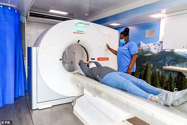 Un paciente es examinado para detectar cáncer de pulmón en un camión de escaneo móvil en el marco de una iniciativa destinada a detectar la enfermedad antes, cuando es más fácil de tratar.