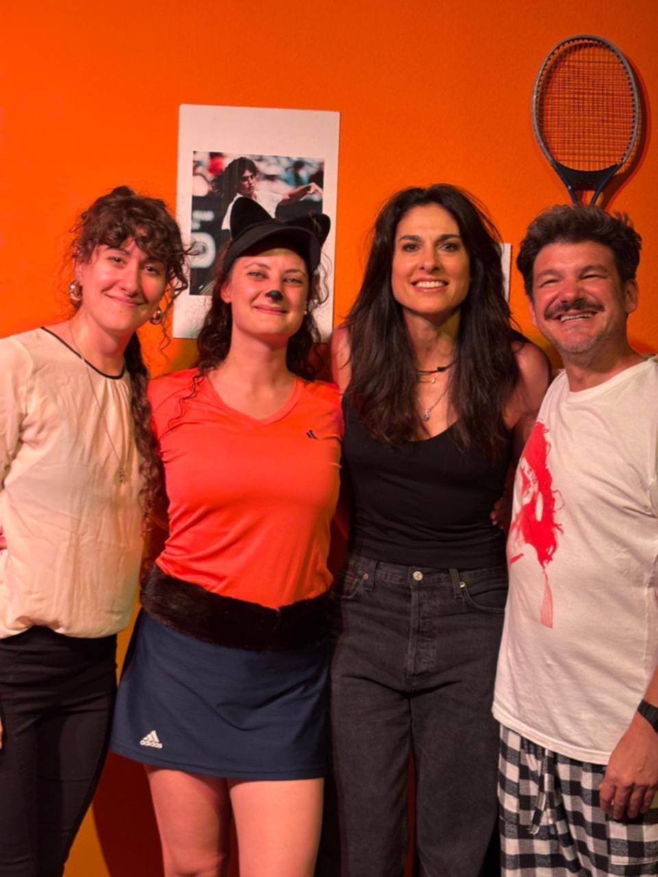 Esa admiración de la niñez se convirtió, años después, en materia teatral. “¿Y dónde está Gaby?” nació casi por azar, en una reunión creativa junto a Micaela Minervino, Pilar Fernández y la directora Maruja Bustamante. En la casa de una de ellas, un enorme rascador para gatos terminó funcionando como disparador. La gata de Pereyra se llama Gabriela Sabatini, en homenaje a la tenista, y a partir de ahí apareció la idea: una obra de microteatro atravesada por enredos, gatos, recuerdos y una figura mítica que sobrevuela toda la historia: la Gaby Sabatini original.