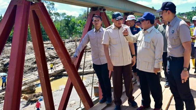 Prabowo inspecciona el puente Bailey en el sur de Tapanuli