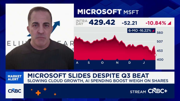La estadística de crecimiento más importante para Azure y otros servicios en la nube fue del 39 %, por debajo del consenso del 39, 4 % de StreetAccount. La compañía solicitó alrededor de $ 12 6 mil millones en ingresos fiscales del tercer trimestre del segmento de Computación Más Personal que incluye Windows, menos que el consenso de StreetAccount de $ 13 7 mil millones, y el margen operativo implícito para el nuevo trimestre también se quedó corto.