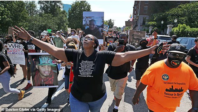 Monica Cannon-Grant, en la foto de arriba en una protesta de Black Lives Issue en 2020, fue sentenciada a libertad condicional y prisión domiciliaria el jueves en un caso de fraude.