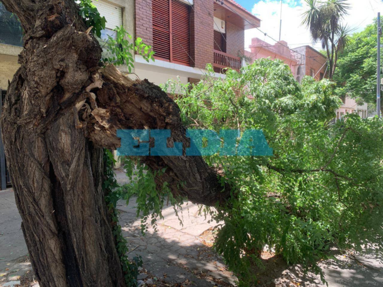 El primero de los episodios se registró en calle 116, entre 62 y 63, donde un ejemplar de gran porte se desplomó sobre la calzada. Minutos más tarde, otro árbol cayó en calle 115, entre 64 y 65, luego de quedar enganchado en un tendido de cables.