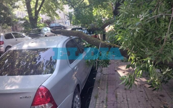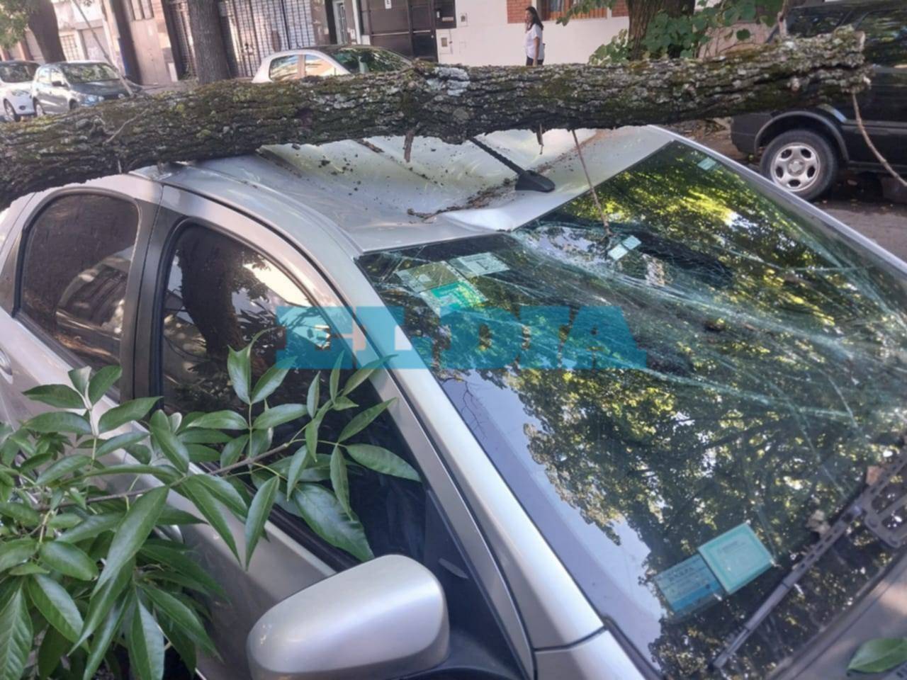 Según relataron desde el barrio, las ramas del enorme ejemplar dieron contra dos autos que estaban estacionados. Producto del impacto, ambos vehículos presentaron en principio daños de chapa en la parte del techo, aunque uno de ellos además terminó con el parabrisas dañado.
