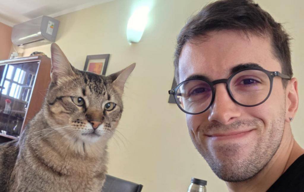 Su rutina es directa. Se levanta alrededor de las ocho y media, desayuna y prende la computadora. Generalmente trabaja en el living, aunque también tiene un escritorio en la habitación. Vive solo, pero está en pareja, y cuando su novia está en casa se organizan para compartir los espacios.