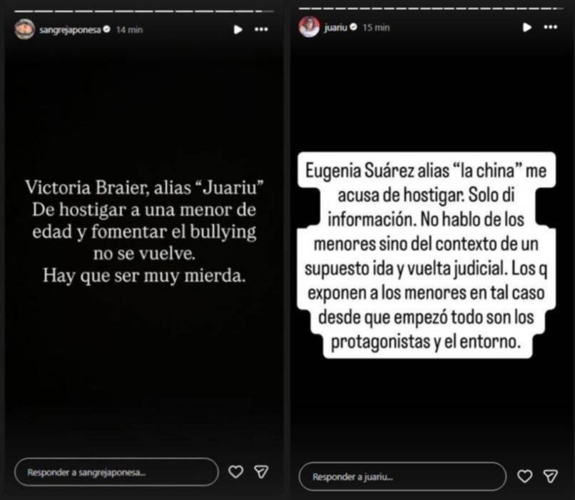Lejos de quedarse callada, Juariu recogió el guante y respondió con ironía: “Eugenia Suárez alias ‘La China” me acusa de hostigar. Solo di información. No hablo de los menores sino del contexto de un supuesto ida y vuelta judicial. Los que exponen a los menores en tal caso desde que empezó son todos los protagonistas y el entorno”.