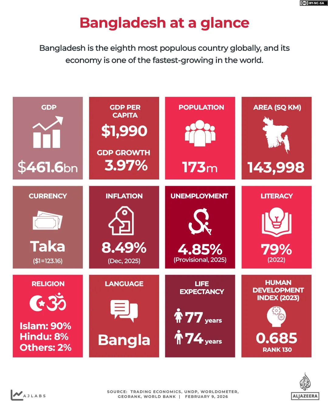 Disadvantage más de 173 millones de ciudadanos, Bangladesh es el octavo país más poblado del mundo y, en los últimos 25 años, su economía ha sido una de las de más rápido crecimiento en el mundo, aunque el crecimiento se ha enfriado en los últimos años.