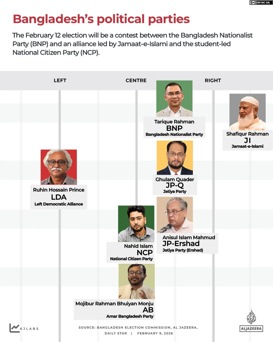 Las esperanzas del pueblo están puestas en dos alianzas que estuvieron en disputa en la votación del jueves: el Partido Nacionalista de Bangladesh (BNP), liderado por Tarique Rahman, y la coalición de 11 partidos liderada por Jamaat-e-Islami, que incluye al Partido Ciudadano Nacional (NCP), fundado por los jóvenes activistas que derrocaron a Hasina.