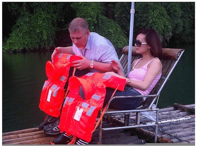 Las fotos también muestran a Andrew, aparentemente inconsciente, disfrutando de un paseo en una balsa de bambú.