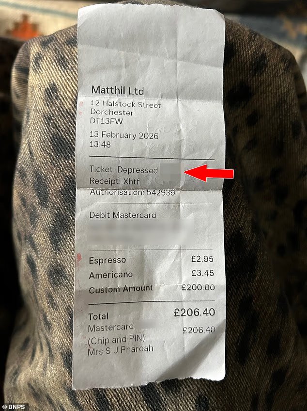 El personal de la cafetería Crossroads escribió “joder deprimido” en el recibo de la familia de Hannah Pharoah, que estuvo presente en el velorio de su padre.