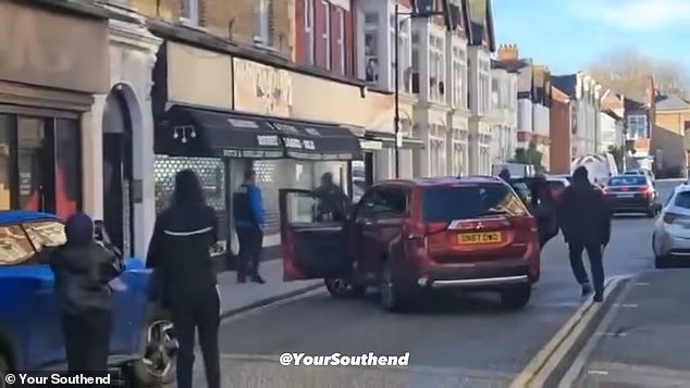 Un conductor de Mercedes pareció impedirles salir de la carretera, pero la pandilla giró y escapó por Weston Road.