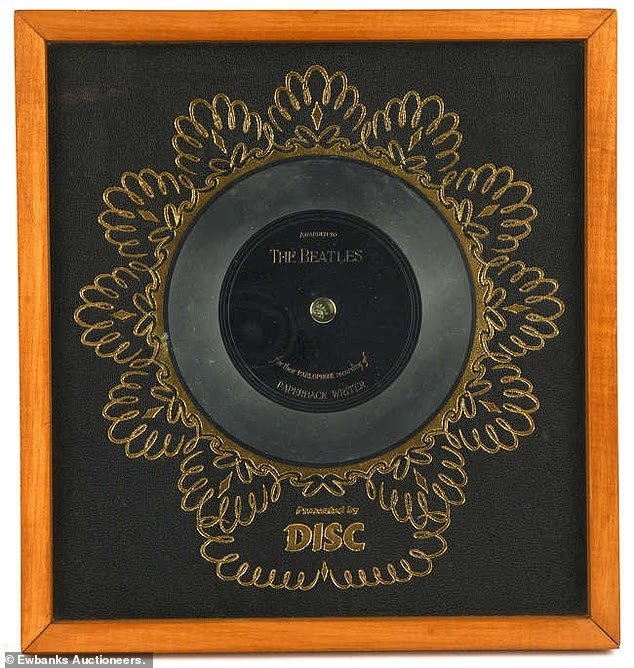 La descripción del catálogo publicada por Ewbanks Auctioneers, con sede en Surrey, dice: “Los Beatles recibieron este premio por el exitoso sencillo ‘Paperback Writer’ lanzado en el sello Parlophone el 10 de junio de 1966, del (entonces) destacado semanario music británico ‘Disc’ (más tarde Disc and Music Mirror)”.