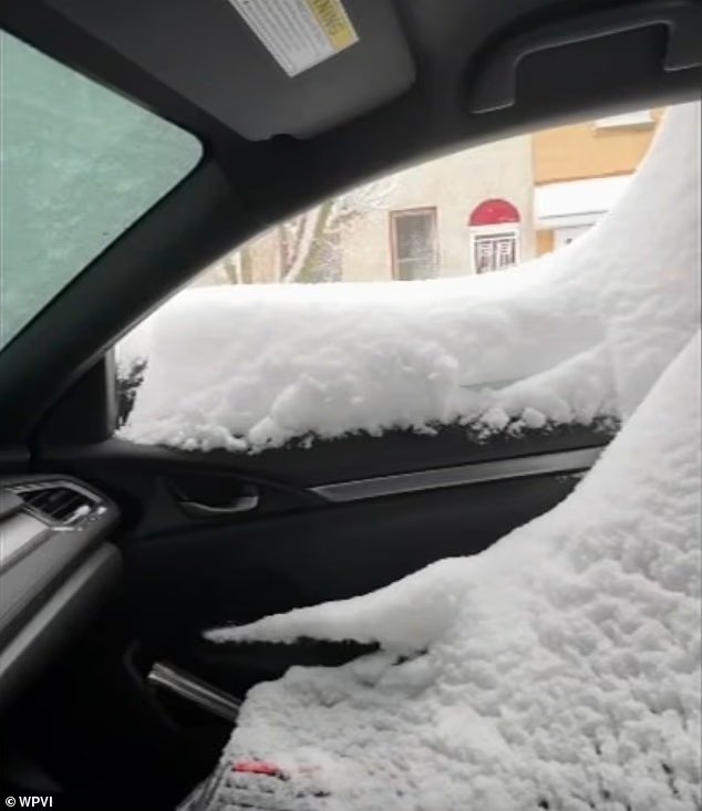 El vehicle de un residente de Filadelfia quedó completamente lleno de nieve después de que accidentalmente dejó las ventanas abiertas.