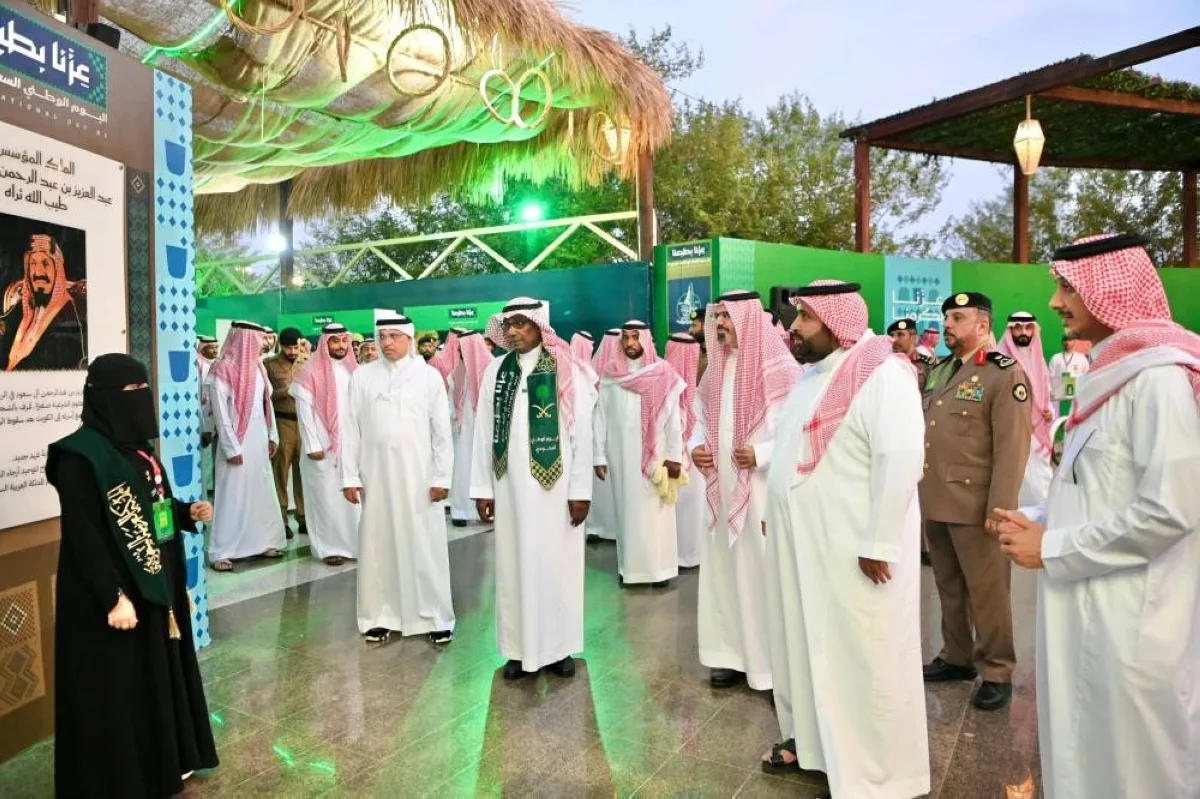 El pabellón de la Universidad muestra pinturas artísticas que llevan consignas que representan la identidad oficial de la celebración de la patria de su glorioso día, “nos atribuimos a nuestra naturaleza”, como una expresión sincera de lo que los ciudadanos del reino de la Arabia Saudita distinguen de las generosas características y buenas características que representan su identidad nacional.