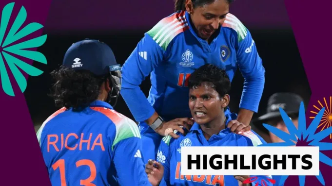 Mire los aspectos más destacados de un juego de apertura afectado por la lluvia de la Copa Mundial Femenina mientras India se defiende después de un colapso de orden medio para derrotar a Sri Lanka por 59 carreras.