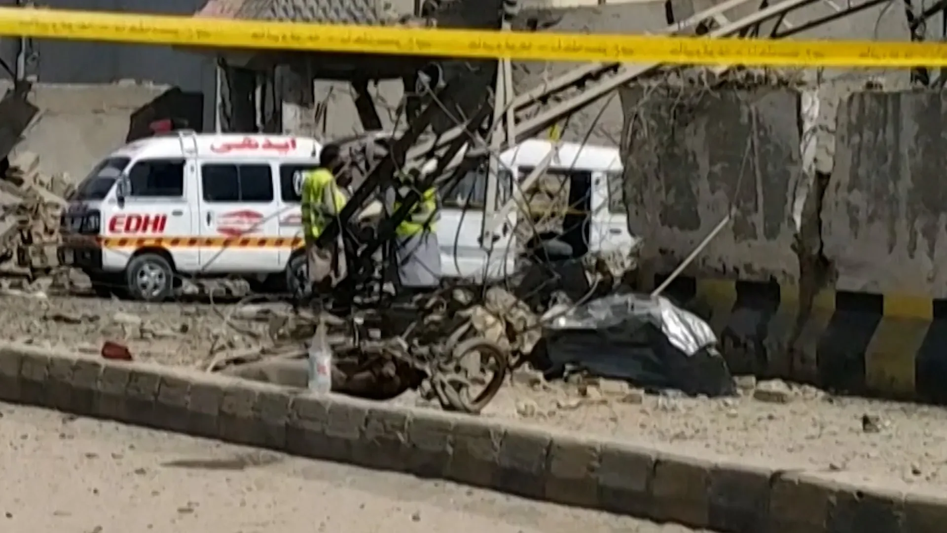 El video clip muestra los restos que dejan un bombardeo suicida fuera de una sede paramilitar en la provincia de Baluchistán de Pakistán, donde al menos 10 personalities murieron y docenas resultaron heridas.