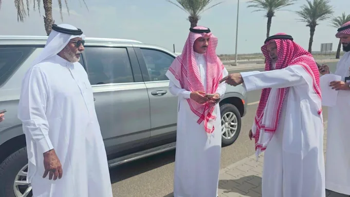 El gobernador de Samtah, Dr. Khafir bin Zaraa al -omari, durante la gira de inspección en el vecindario Eskan al -Kharsh, acompañado por el alcalde, Ing. Nasser Atif y varios directores de departamentos gubernamentales, miembros del consejo local y miembros del comité major de la ciudad de Salud de Samtah, informaron sobre las necesidades y requisitos de la población.